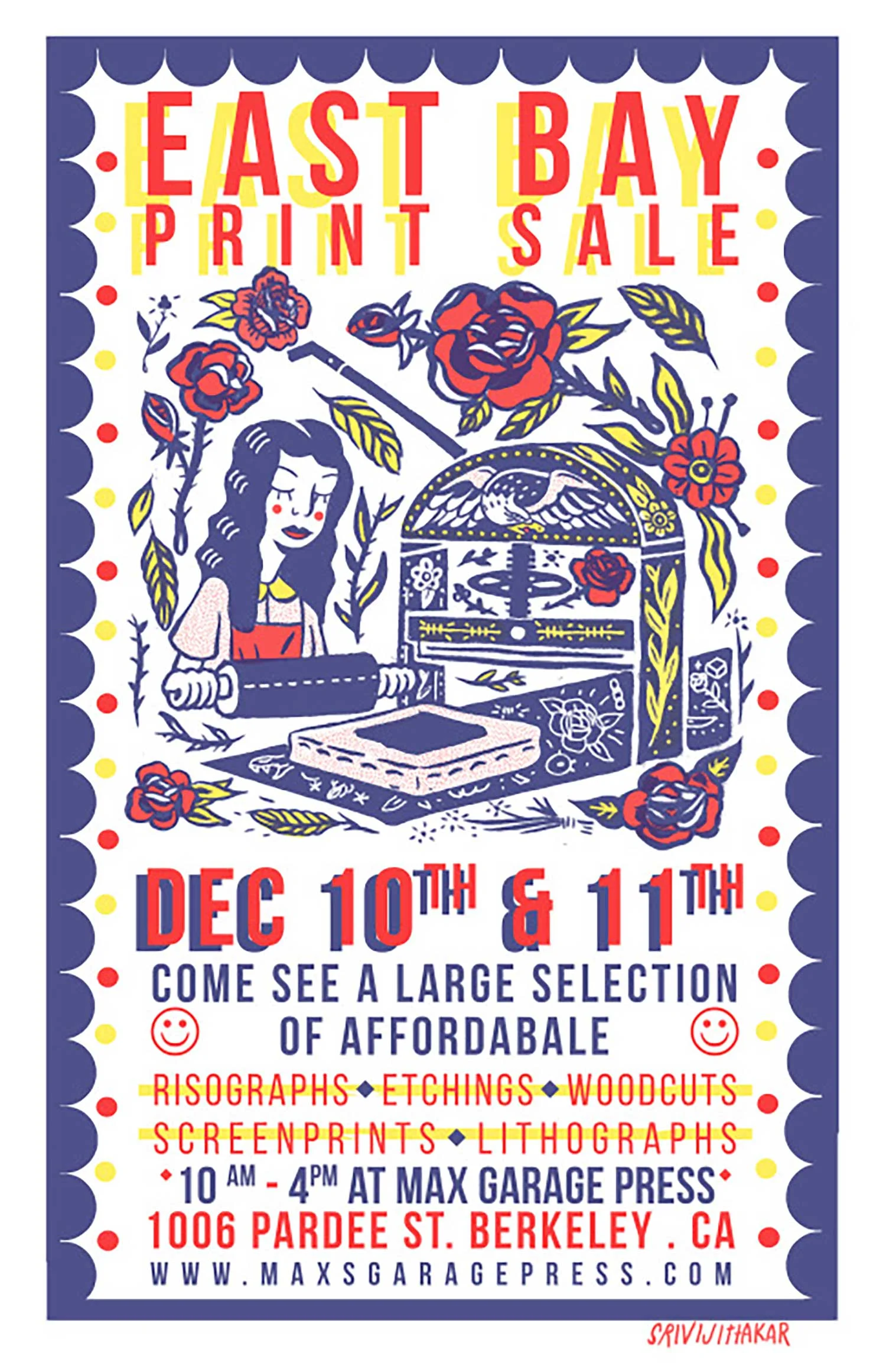 The annual East Bay Print Sale, hosted by Max's Garage Press in Berkeley, CA, took place on December 10th and 11th. The sale event showcases affordable prints by talented local artists, and it draws over 1,000 people. I was unfortunately out of town, but I've heard great things about this year's artist line-up.